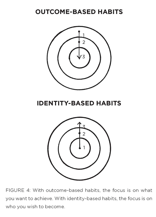 When I first stumbled upon this concept, it really resonated with me. And when I started implementing identity-based habits (bottom right) as opposed to outcome-based habits, this was a true turning point in making them consistent.